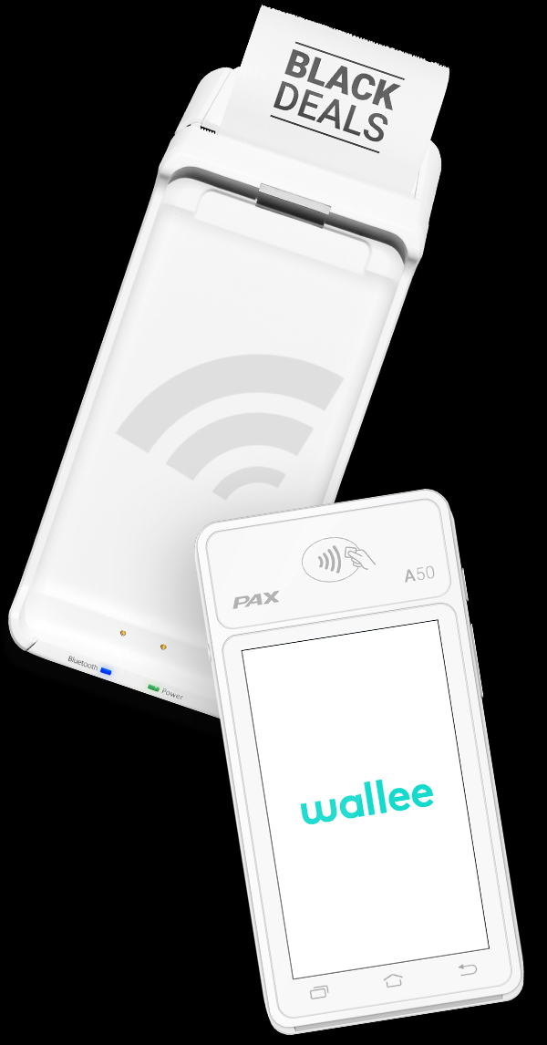 Sichern Sie sich jetzt das Terminal A50S wallee und die passende Tischladestation mit Bluetooth Drucker in unseren Black Deals.